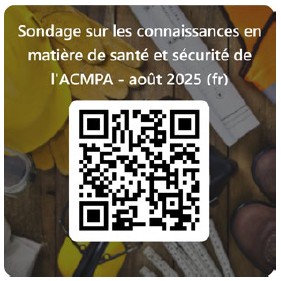 Nous vous rappelons de répondre au sondage sur les connaissances en sécurité de l’ACMPA, envoyé par l’intermédiaire de votre RPOS le 20 août, si ce n’est pas déjà fait. Votre contribution est essentielle pour nous aider à maintenir un milieu de travail sûr et solidaire pour tous.